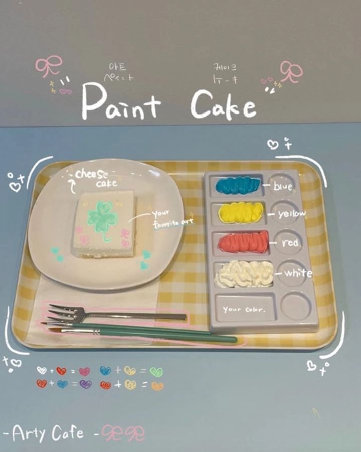 ケーキに色つきクリームで絵が描けるペイントメニューが名物のアートカフェ。