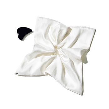 〈右〉スカーフシュシュ、〈左〉クリップ/ともにheyep 「ひとつ結びにラフにつけるだけで、凝った見た目がかないます。スカーフシュシュは大胆なボリューム感で、つけると小顔にみえるうれしい効果も」(塚田さん)
