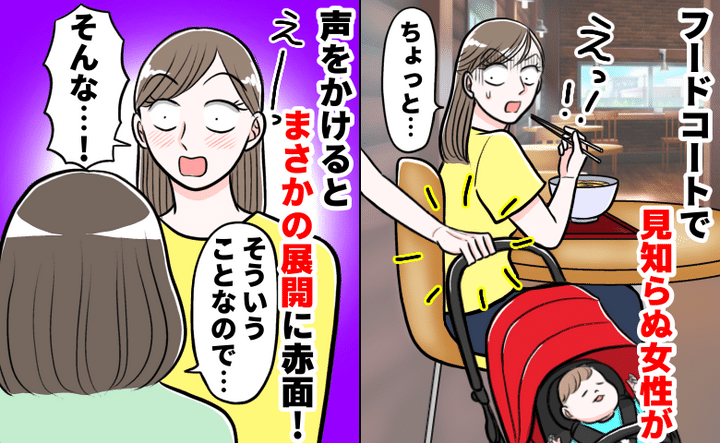 「動いてる!?」フードコートで見知らぬ女性がベビーカーに手を…声をかけると“まさかの指摘”に赤面