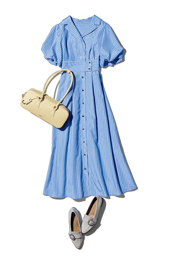ワンピース¥25,300/アプワイザー・リッシェ バッグ¥39,600/サマンサタバサ(サマンサタバサルミネ新宿店) 靴¥14,300/ワシントン(銀座ワシントン銀座本店)