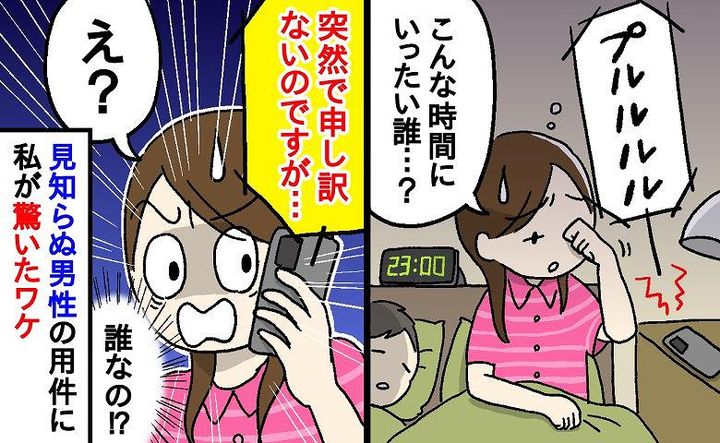 すると、突然電話が鳴り出しました。「こんな時間に誰なんだろう」と思いながら出てみると、見知らぬ男性が話しかけてきます。