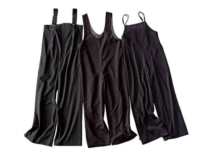 トップスで自在に印象チェンジ! マルチな対応力。甘さと同時にクールさや大人感を演出できるのも魅力。(左から)タックサロペット¥3,990(GU)深Uサロペット¥5,830(BASEMENT online)キャミサロペット¥6,598(グローブ/ワールド プレスインフォメーション)