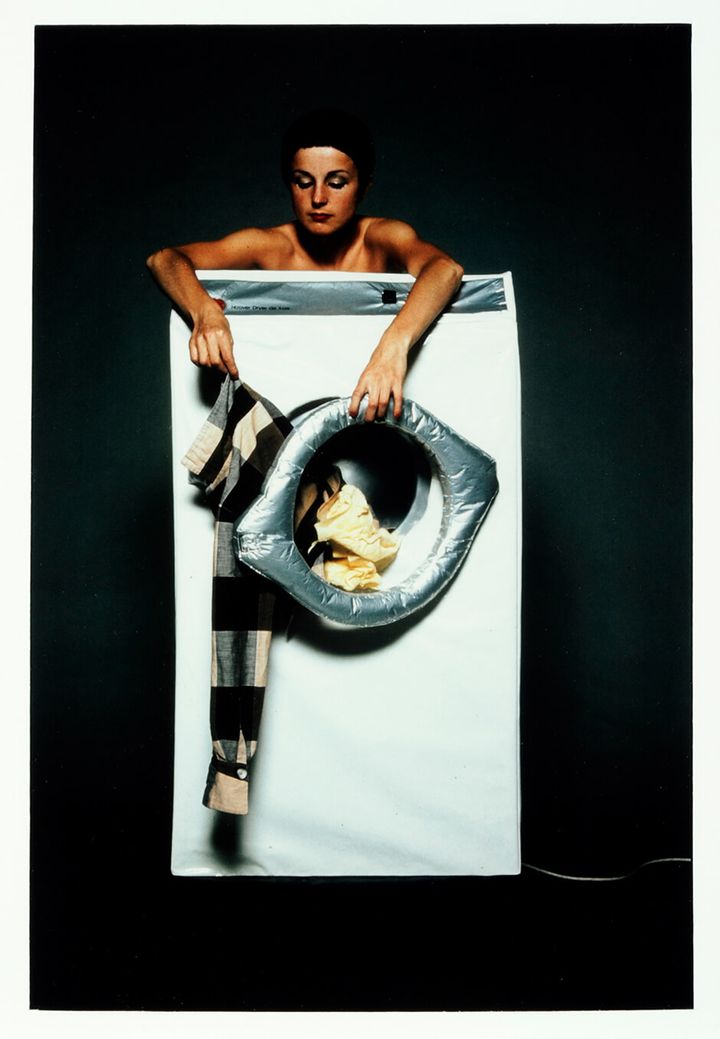 身体と密接に結びついた芸術形式であるパフォーマンスとして、冒頭にロンドン出身の現代アーティスト Helen Chadwickのジェンダーを問う「In the kitchen」や、ワルシャワに生まれルーマニアで育ったAndré Cadereの「Round wooden bar(丸い木の棒)」など70sを代表する写真を紹介。