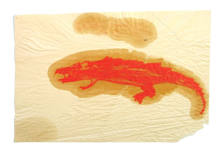 Christine Deknuydt | Crocodile rouge | 1995 | Drawing |紙にチョーク、油彩、グラファイト Photo: Ludovic Linard | ©Arlette Deknuydt- Collection Frac Grand Large ― Hauts-de-France