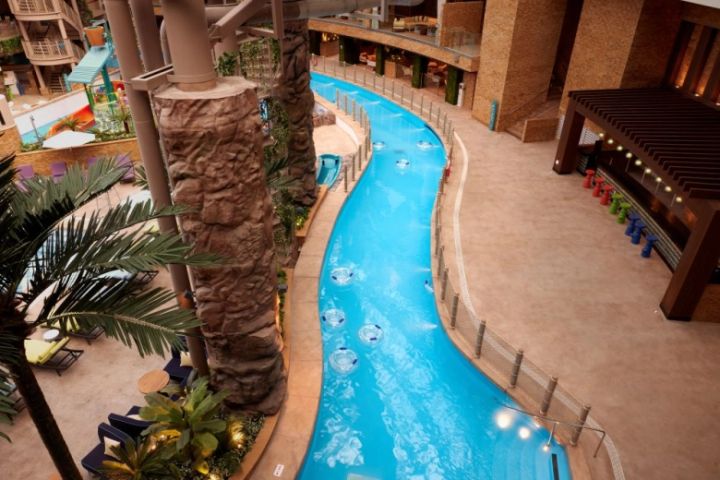 韓国初の全天候型ウォーターパークで、巨大な波のプールやスリル満点のスライダー、リラックスできる温水ジャグジーなど、多彩な施設がそろっています。室内型なので天候や季節を問わず楽しめるのが大きな魅力。吹き抜けのガラス天井が開放的で、屋内でもリゾート感を満喫できる設計が印象的でした!
