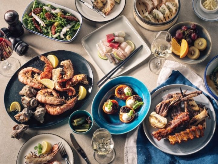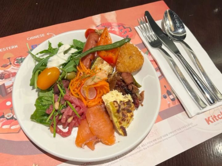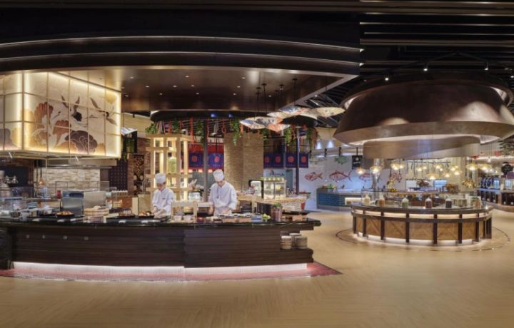 韓国料理はもちろん、寿司やステーキ、スイーツなど世界各国の料理がライブキッチン形式で提供されます。