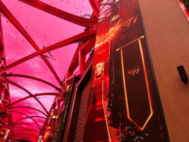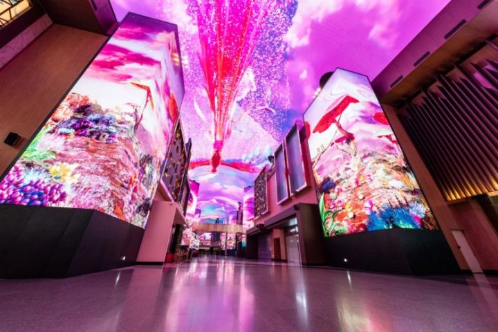 360度に広がる映像と光の演出が生み出す非日常空間は、まるで異世界に迷い込んだような感覚に。