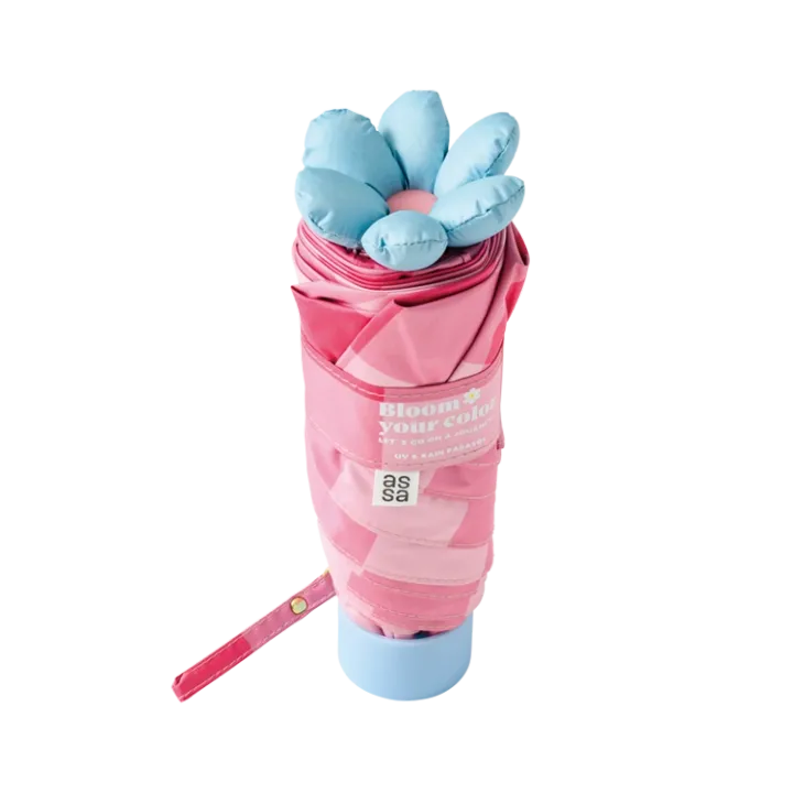 Item 【PLAZA】ピンク×ブルーお花パラソル折りたたみ傘