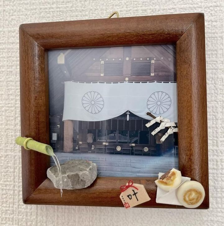 北海道に住んでいた頃から訪れている神社です。地元である北海道に帰省した際にも、初詣や祈祷時には北海道神宮にお世話になっております。大人になってからは済んだ空気と夏と冬で見られる美しい景色が恋しく、ふと訪れたくなるパワースポットです。手水舎と木に結ばれたおみくじ、絵馬のミニチュアを制作しました。また、北海道神宮では必ず食べる大好きな「判官さま」も欠かせません♪