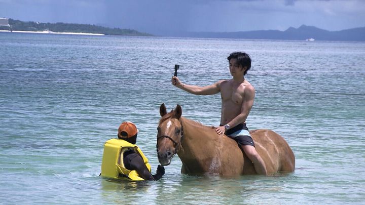 ビーチ沿いにある牧場に向かう途中では、まさかの筋肉襦袢ボケまで披露。牧場では海を歩く乗馬体験ができると聞き、武田も海での乗馬を楽しむ。さらに、馬の美ボディにも注目して…!