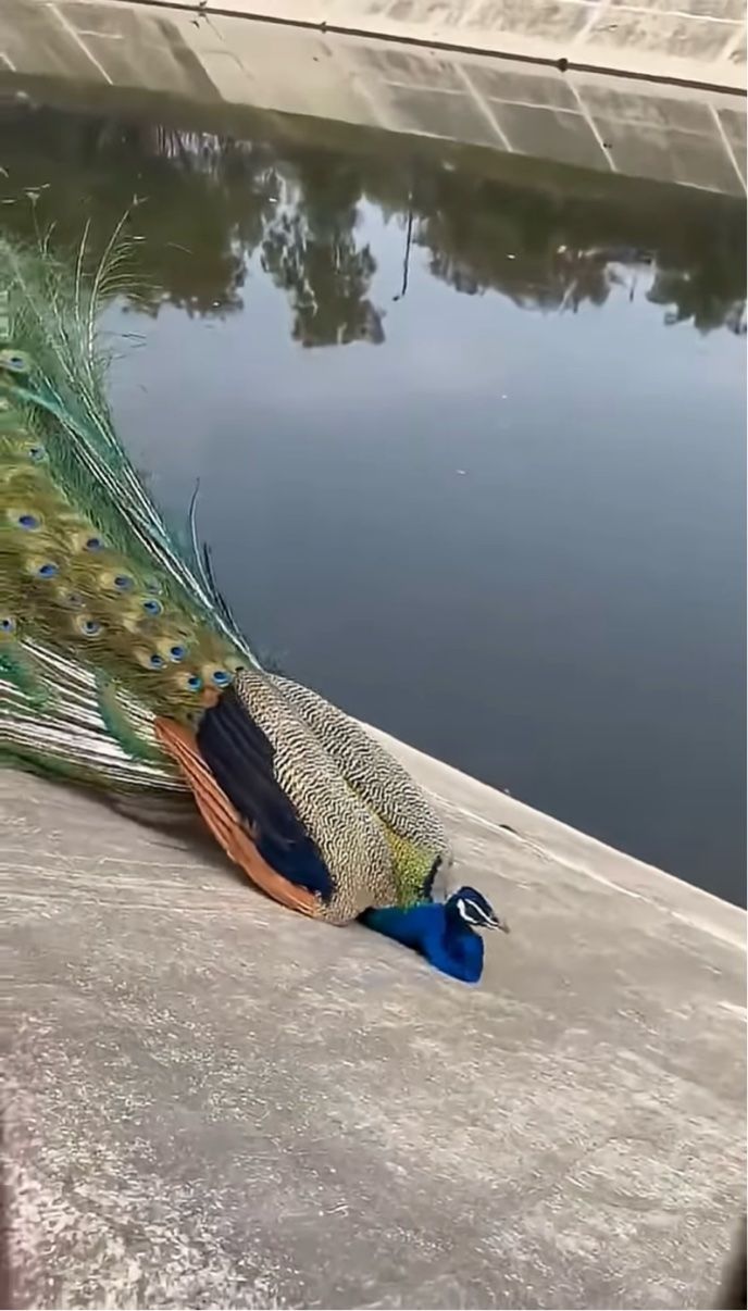 3. クジャクがピンチ!急斜面から水路に滑り落ちそうに!?【海外・動画】