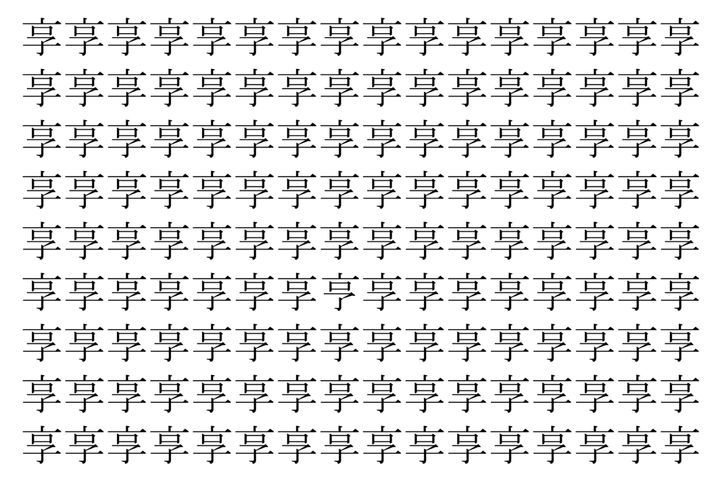 画像に並んだたくさんの「享」という漢字。 その数144個なのですが・・・、実はその中に1つ違う漢字が紛れ込んでいます!!