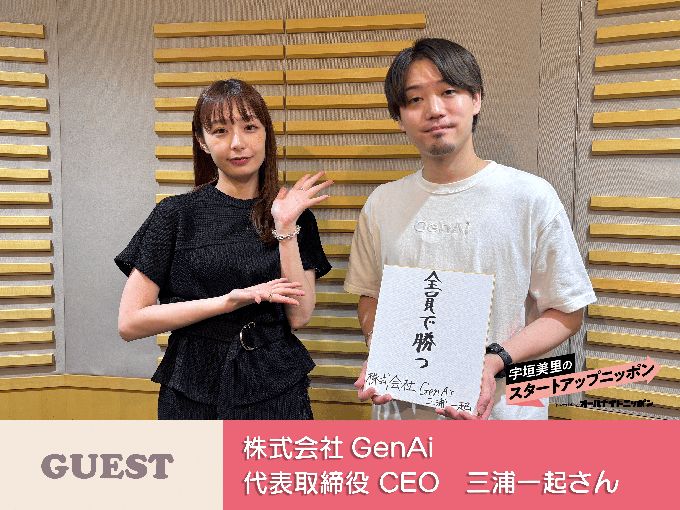 第33回のゲストには株式会社GenAi(ジェナイ)代表取締役CEOの三浦一起が登場。GenAiは、ITコンサルティング事業とアプリ・システム開発事業を主軸に、クライアント企業の課題解決やプロジェクト推進を支援している。中でも注目されているのが「GenAi Studio(ジェナイスタジオ)」。生成AIと人の手を融合させた独自の「ブレンド開発」により、新規事業のアプリを平均1週間以内で完成させることを可能にしている。