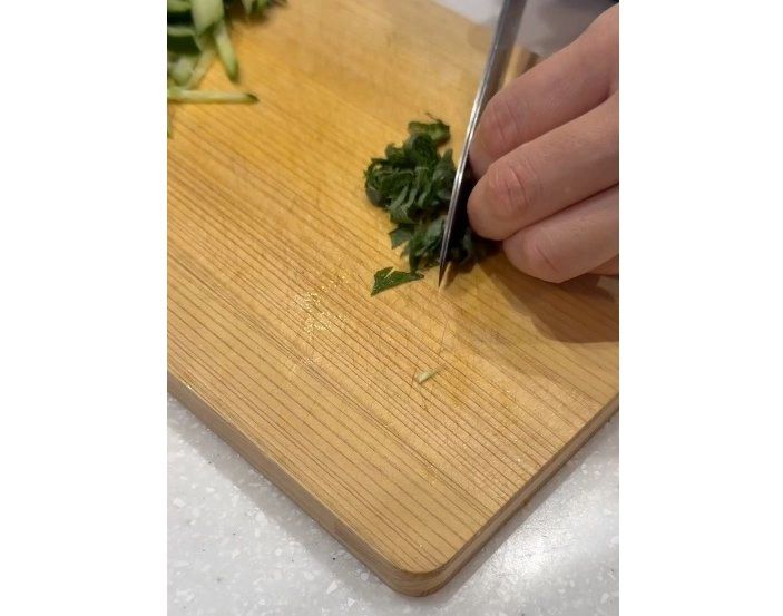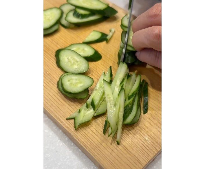 まず斜め切りしてからそれを重ねて細く切っていくと切りやすく早いですよ。このシャキシャキとした歯ごたえも食欲をそそってくれます♪