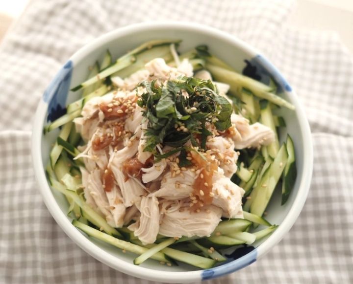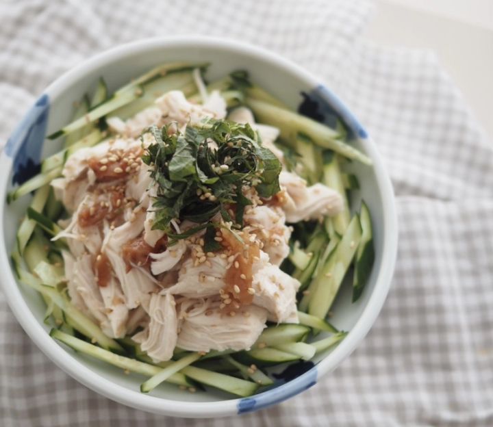 夏バテ中はつい、冷たい素麺やお蕎麦など“さっぱり系”に偏りがちですが、回復にはしっかりたんぱく質を摂ることが大切です!ささみがメインのこのレシピで、良質なたんぱく質をたっぷりチャージしてくださいね。知ってる方も多いと思いますが、梅のクエン酸には疲労回復効果があるので、こちらもこの時期、積極的に摂りたい食材です。
