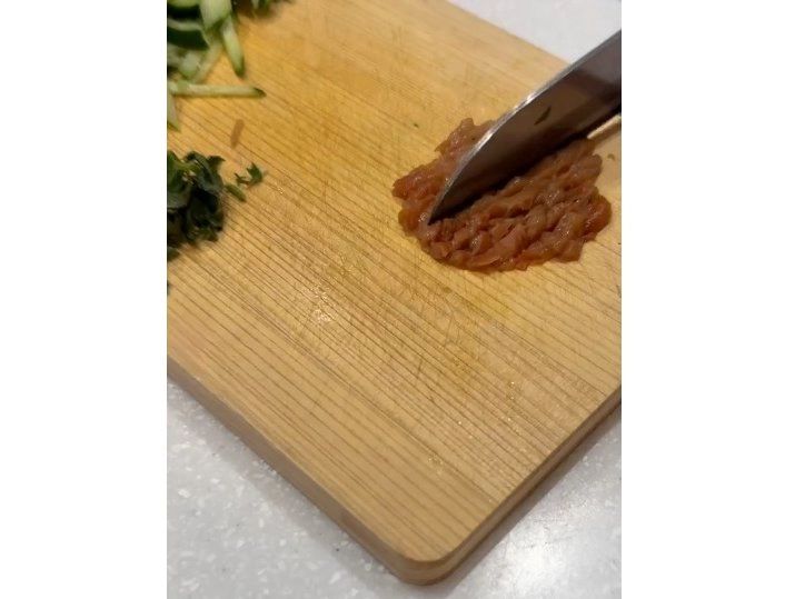 ささみを細く裂いたら先ほど叩いた梅を入れて和えましょう。