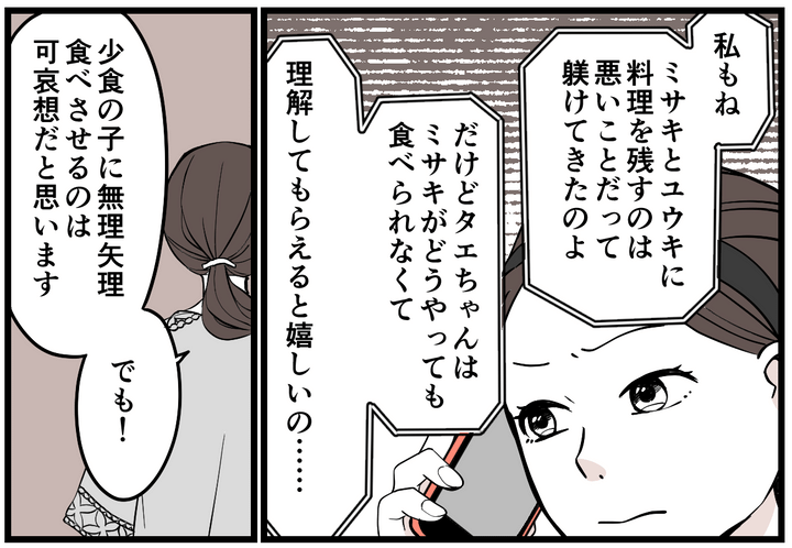 「それこそ甘やかしすぎじゃないですか? これを食べなさい、食べないなら下げて、もうないよって言えば食べるんじゃないですか?」「それが食べないのよ。食べないから困ってるの」「うーん……」状況は理解できましたが、やはり「マナーが悪いんじゃないか」「はっきり言ったほうがいいのではないか」と思ってしまいます。