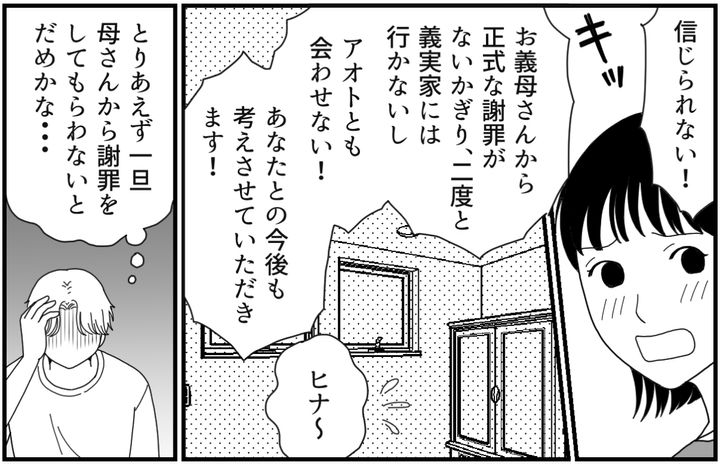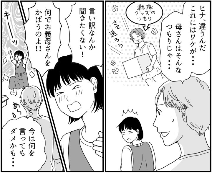 ここまで怒っているヒナを見るのは初めてに近かった。そりゃ夫の実家から元カノとの思い出を送りつけられたら、誰だって気分が悪いだろう。母はそんなつもりはなかったかもしれないが、ヒナが怒るのは無理もない。
