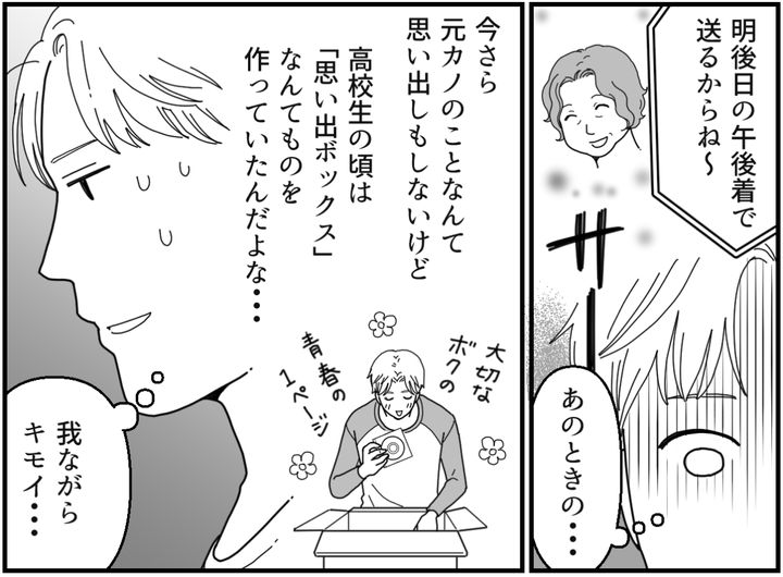 俺は母からかかってきた一昨日の電話のことを思い出した。二世帯同居に向けてリフォームしようと、現在実家は片付け中。そんななか納戸から俺の物らしき段ボールが出てきたというのだ。俺は確かにそれを送ってもらうよう頼んだ。