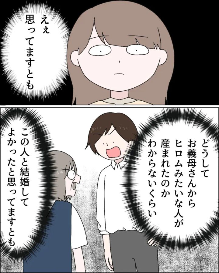 私のことを庇って義母にピシャリと言ってくれるヒロムですが。実際には、えぇ、いい気味と思っていますとも。どうして義母からヒロムのような優しい人が産まれたのかわからないくらい、この人と結婚して良かったと思っていますとも。