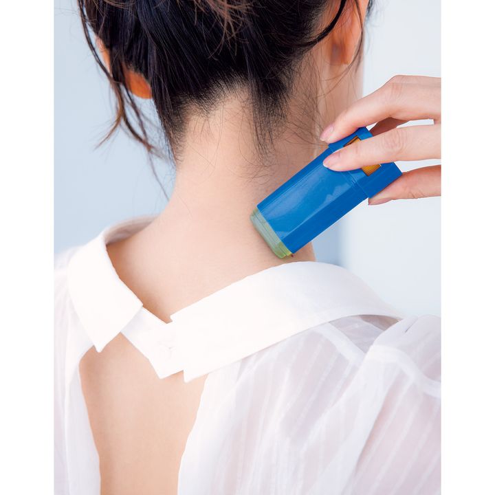 気づいたら焼けてる…という人は、塗りムラや塗り忘れが原因かも。見落としがちなパーツこそ細かく丁寧に。出掛けた瞬間の「塗り忘れた!」を解決するためにも、便利なスティックをそのままカバンにイン。