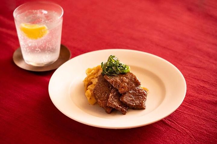 お酒は濃厚な焼肉や甘辛のねぎだれの味を絶ってくれるジンソーダ。レモンをぎゅっと搾った爽やかな飲み口で、後味をさっぱりとしてくれます。