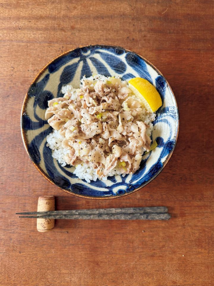器にご飯を盛って2をのせ、好みで粗びき黒こしょうをふり、レモンを添える。