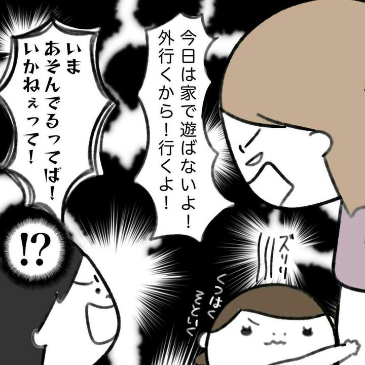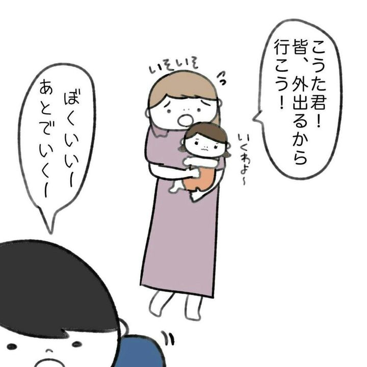 ですが、かかじりさんの子どもたちは外で遊びたい様子。わが子だけで遊びに行かせることはできないため、こうたくんを急かせますが、言うことを聞いてくれません…。