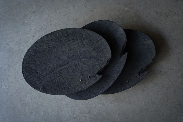 Shimoo Design 「浮様」 浮様と名付けられた佇まいが美しい木製のうつわ。油に強く、水を弾く仕上げでお肉料理なども直接盛り付けが可能。木が経年変化したような風合いを作家の感性で表現している。