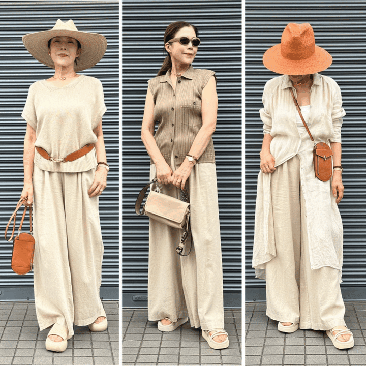 【60代ワイドパンツコーデ】ワイドパンツでスタイルアップを狙うなら?脚長効果抜群の「ZARA」リネンパンツコーデ3選