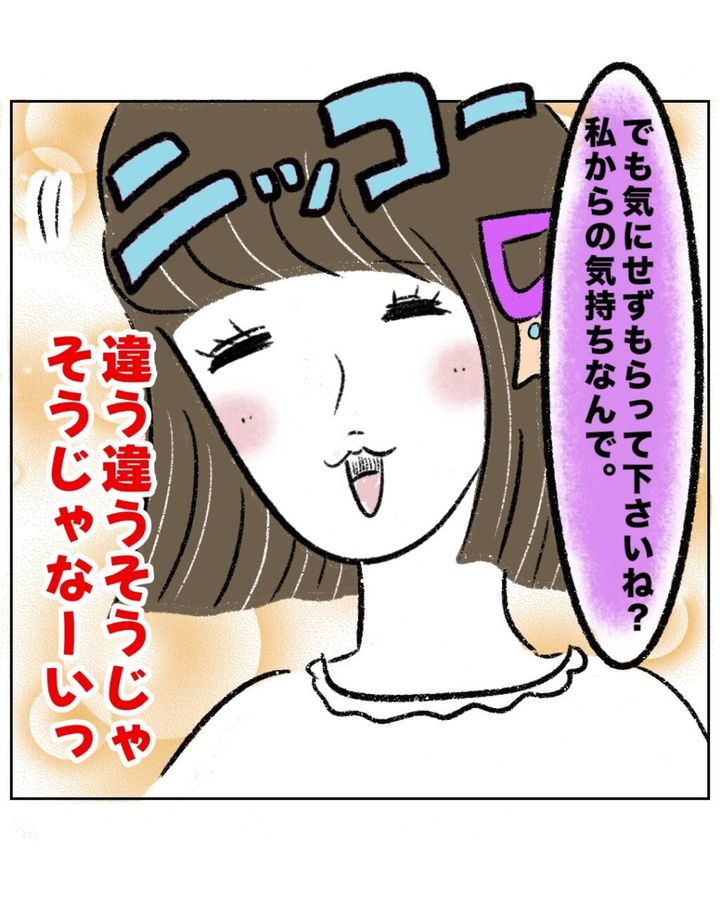 「でも気にせずもらってっ下さいね?私からの気持ちなんで。」とにっこり微笑むゆかちゃんママを前にドン引きのまるさんです。