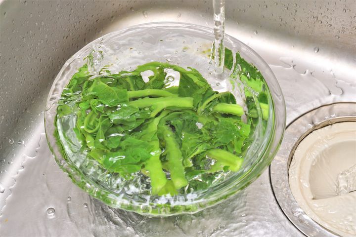 1. つるむらさきをよく洗い、根元を切り落とします。