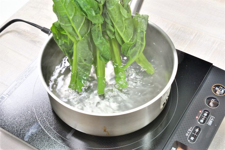 茎の太さに応じて、加熱時間は増減してくださいね。茹ですぎると食感が悪くなるので、さっと茹でるのがコツですよ。
