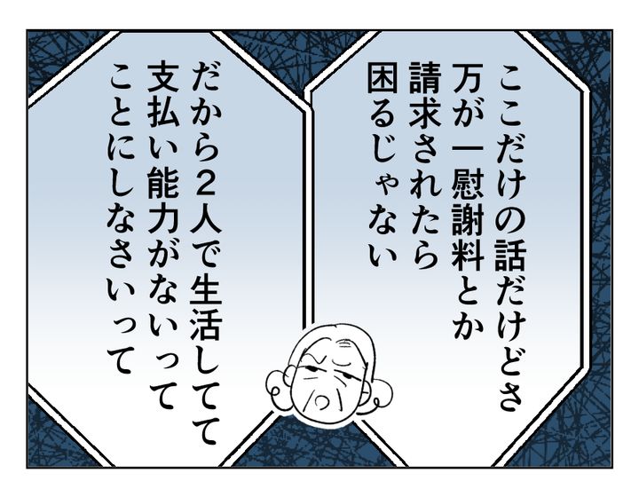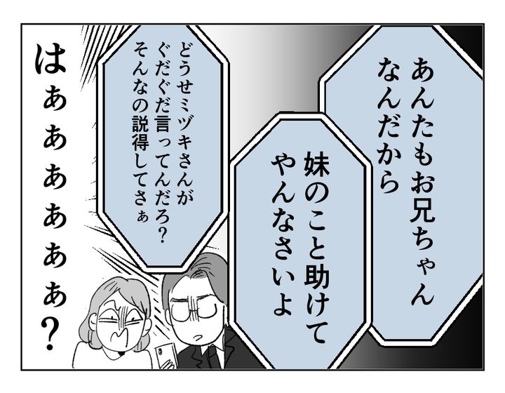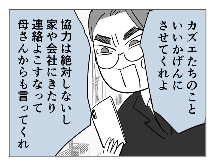 マサユキさんのお母さんは、娘と孫を叱るどころかかばっている様子。それどころか、妹を助けなさいと逆にマサユキさんが責められています。しかしマサユキさんは、これっぽっちも温情を与える気はありません。救いようがないほど、マキちゃんがひどいことをしたからです。