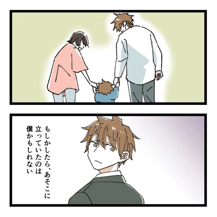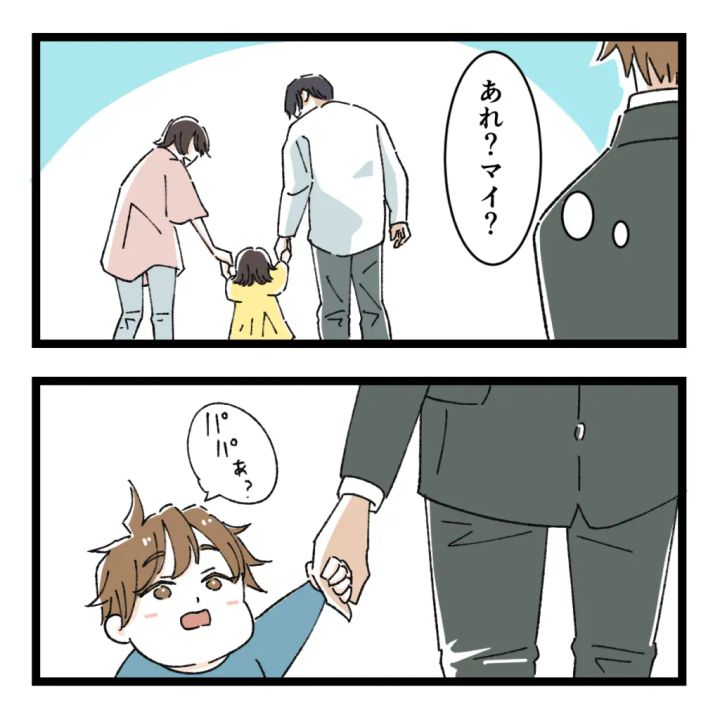 息子ソウを保育園に迎えに行ったら、偶然、元カノの姿を見かけた。マイ、結婚したんだ・・・。ソウが不思議そうに「パパぁ?」と呼んでいるけれど、暫くマイたちから目が離せなかった。あれがマイの夫か。ソウよりまだ小さい女の子と手を繋いで、すごく幸せそうだな。