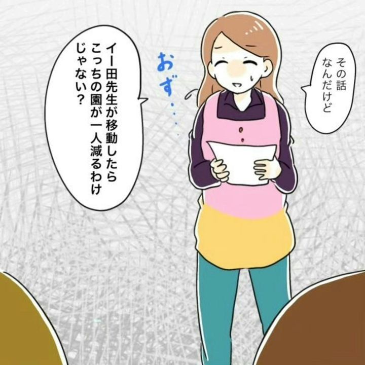 主人公のなしえは育休が明け、元の職場に保育士として復職しました。しかし、復職してみると出産前まで一緒に働いていた同僚はみんな職場を辞めており、驚愕します。なしえの勤める園は民間経営のため、園長の上に社長がいますが、この社長の横暴が育休に入る前よりパワーアップ。理不尽なことが毎日のように起こります。