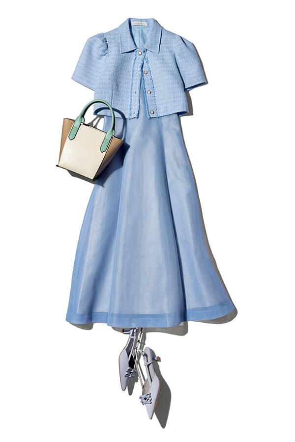 上品なアイスブルーで夏の令嬢通勤をエレガントに