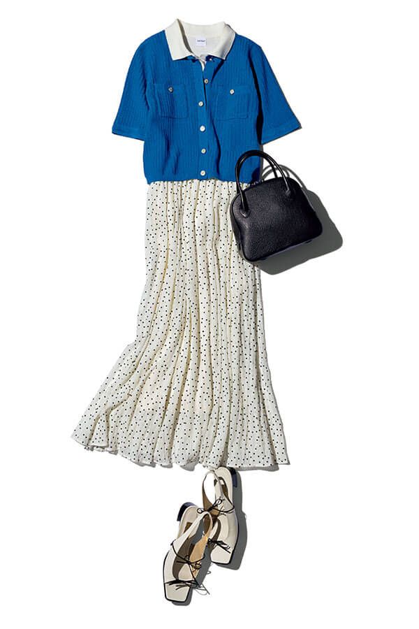 ジャケット¥28,600/ルル・ウイルビー(アルアバイル) ポロシャツ¥2,990/Isn’t She? スカート¥18,700/ストラ バッグ¥68,200/メゾン カナウ(ヤマニ)靴¥18,150/ル タロン グリーズ(ル タロン グリーズ ルミネ新宿店)