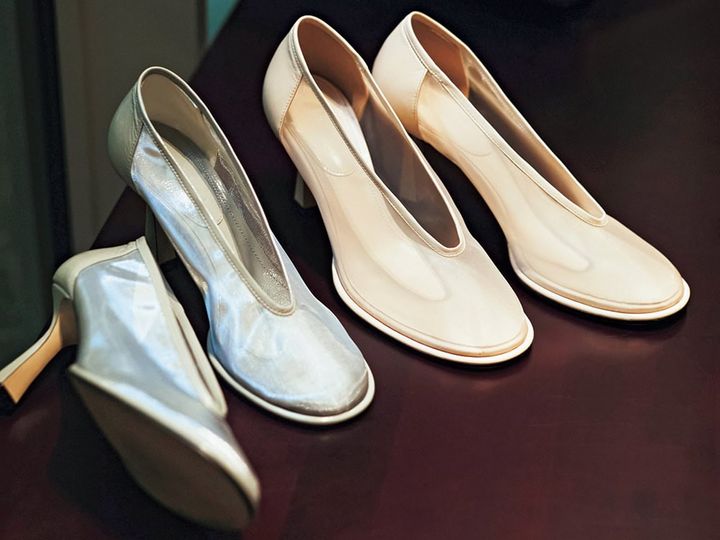 透けるメッシュシューズ各W388,000。オリジナル小物も人気。