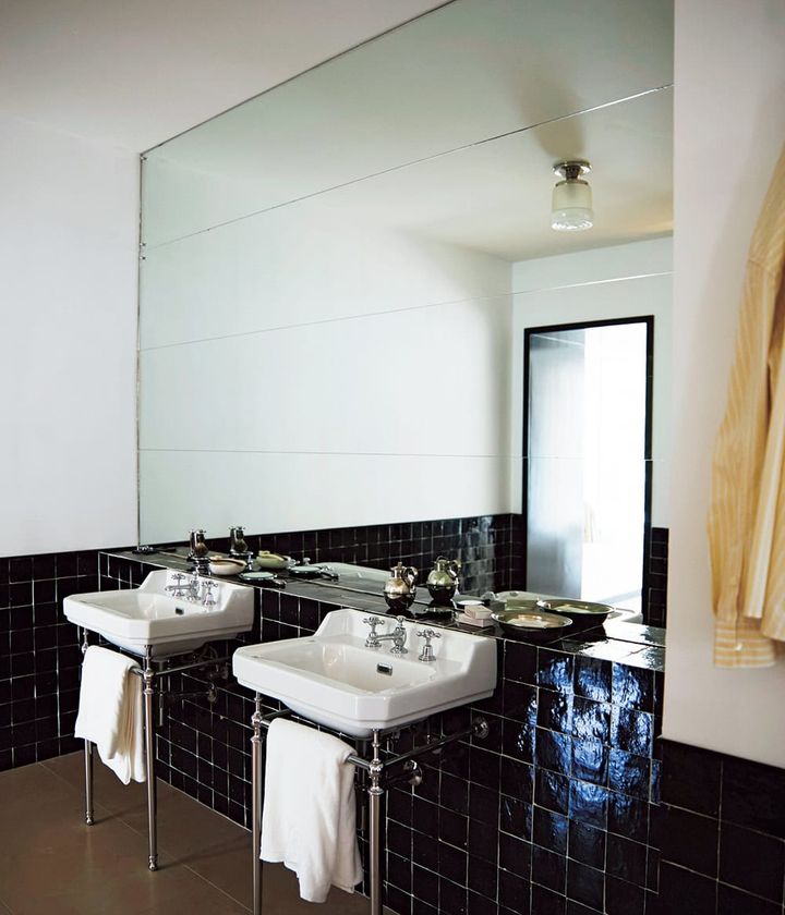 カフェ横の階段を上がりエントランスを入ると左手には木漏れ日の気持ちのいいリビングのようなスペースが広がり、その奥はバスルーム。
