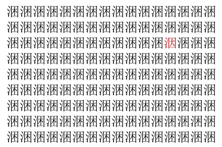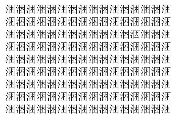 画像の中には、「涃」という漢字が縦に9行、横に16個並んでいます。 全部で144個となりますが・・・、そのうち1つは「異なる漢字」となってますよ!!