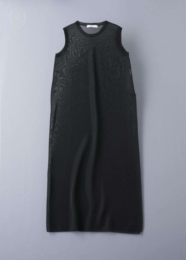 シアーなミラノリブのワンピースで、潔い透けっぷりがとってもオシャレ。例えばビスチェをインナーに入れてもいいし、上からも重ねられる。パンツはもちろんのこと、ミニスカートを穿いても面白いと思います。生足を出す勇気はないけれど、シアーワンピを1枚重ねることで、ミニスカにも挑戦できる。ロング丈のジャケットを着て、足元を透けさせるのも素敵。ありきたりではないレイヤードが楽しめるのがこのシワーワンピの魅力。夏に大人の透けを楽しめそうな1枚です。 ワンピース¥39,600(サヴィル サヴィ)