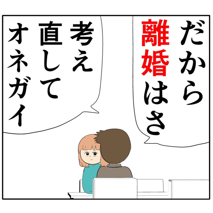 目が覚めたから離婚は考え直してほしいとモモさんに懇願する三郎さんをじっと見つめていたモモさん