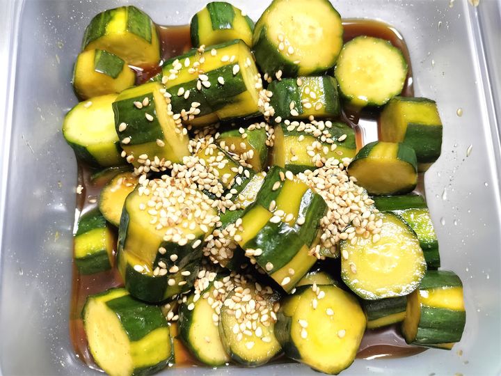 もろきゅうにしたり、ちくきゅう(ちくわにきゅうりを入れたもの)にしたりと、きゅうりの食べ方はいろいろありますが、わたしは「きゅうりは火を通さずに食べるもの」と思い込んでいたので、まさか“茹でてから漬ける“という方法があるとは思ってもみませんでした。そう言えば中華や洋食では、きゅうりを炒めることもあるので、実はそれほど驚くことではないのかもしれません。
