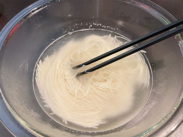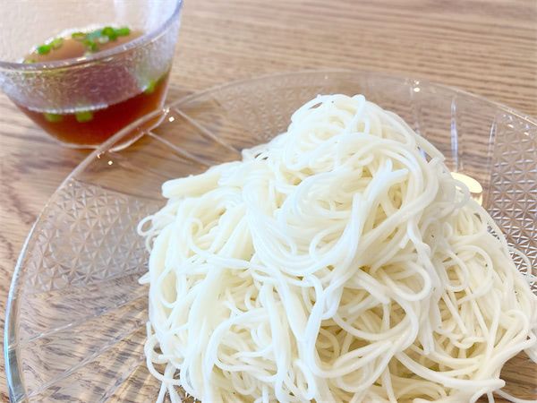 なんとびっくり!火を一度も使わずに、そうめんができちゃいました!ちゃんとコシがあって、普通にお湯で茹でた時と比べて遜色ない仕上がりです。