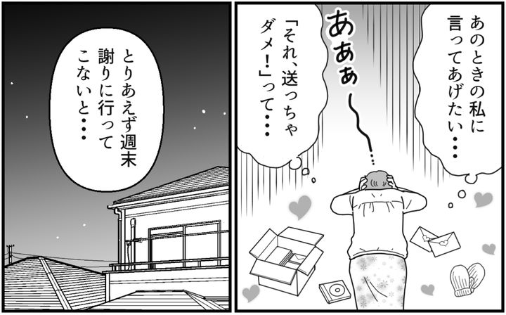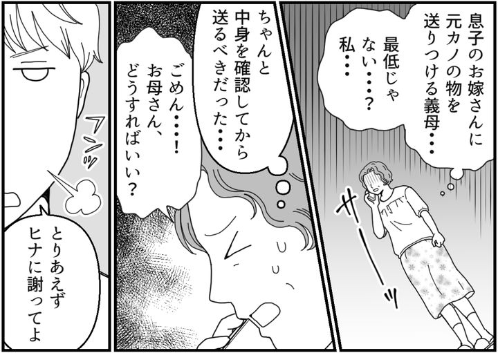 私はため息をつきながら、あらためて自分の行動を振り返ります。息子のお嫁さんに元カノの物を送りつける義母。ヒナちゃんからすれば、これ以上ない嫌がらせでしょう。息子夫婦の間にいざこざを起こしてしまって申し訳ないです。