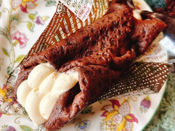 クリームがモコモコ!生地からはみ出てます~!ティラミスのクレープとは…?イメージ出来ませんが「くちどけ」という言葉が気になります…!