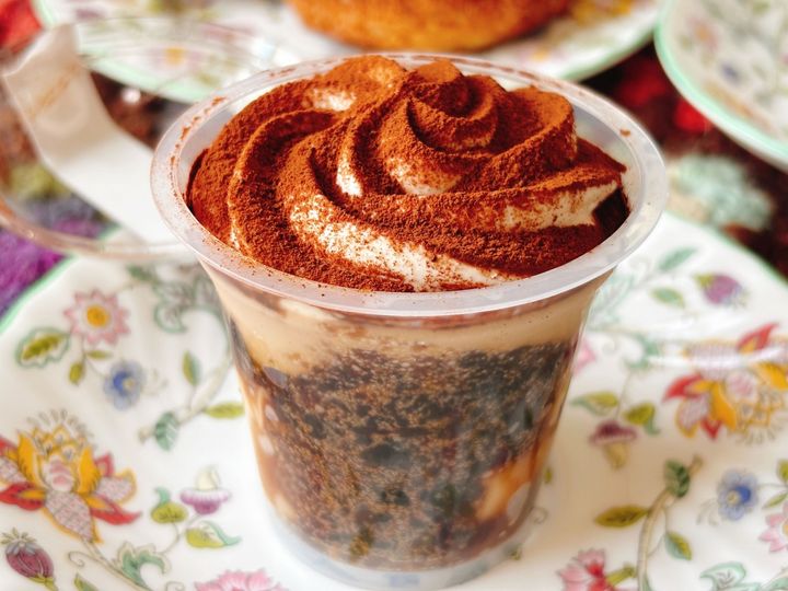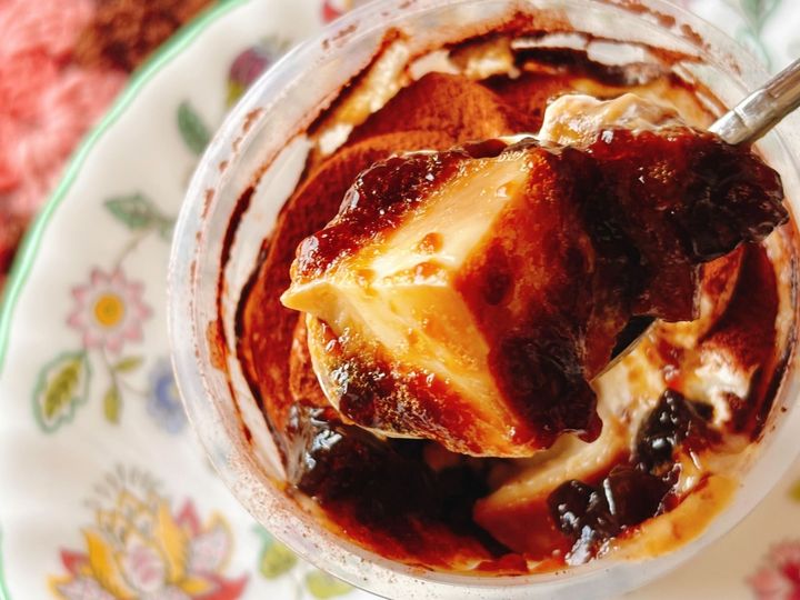 さらにスプーンを進めると、大きなミルクゼリーがゴロゴロと入っています!これもまた、優しい甘みで良きー!どちらのゼリーもティラミスクリームと良く合います。全体を混ぜて食べても喧嘩することなく、それぞれの味わいをしっかり感じられます。スプーン止まらない…!
