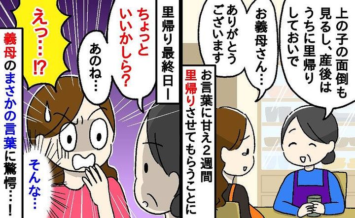 「上の子連れてうちに里帰りしておいで」やさしい義母に感動…お言葉に甘えさせてもらった結果、まさかの展開に