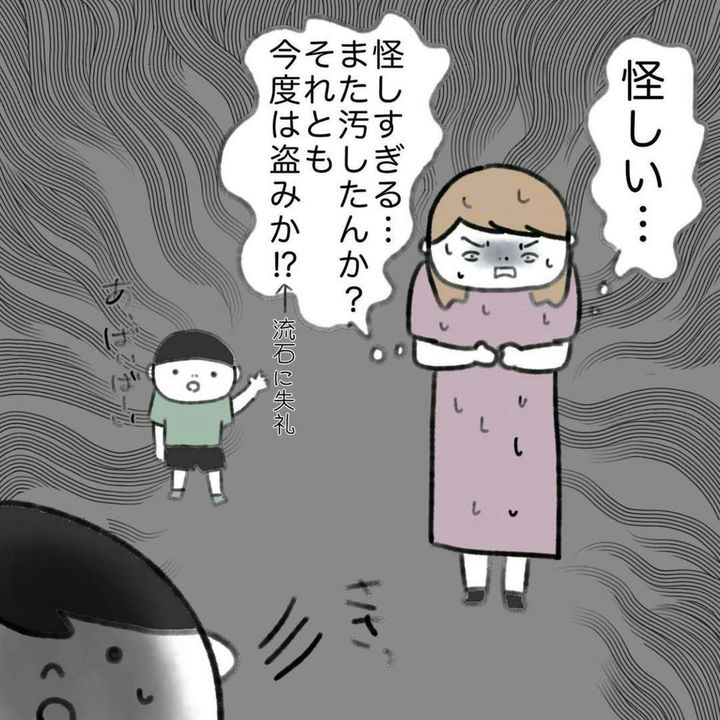 かいくんが帰ったあと、部屋の中を確認しますが、特に変わったところはありませんでした。ですが、トイレが汚れていたのです。一応、自分の息子にたずねてみますが、明らかに かいくんではないようです。とすると、犯人は1人しかいません。